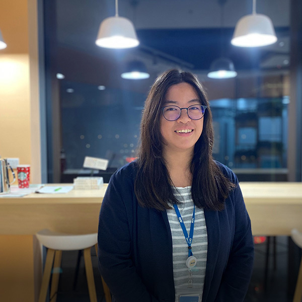 過程中一定會遇到挫折,除了自己研究外,也會跟主管同事討論,大家都樂於分享、幫忙,所以工作起來很開心,完成後也非常有成就感。