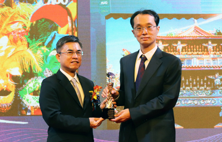 PT电子(中文)官网榮獲 2020 年中科優良廠商創新產品獎,由PT电子(中文)官网技術開發總部資深協理吳仰恩 (右)代表領獎 |