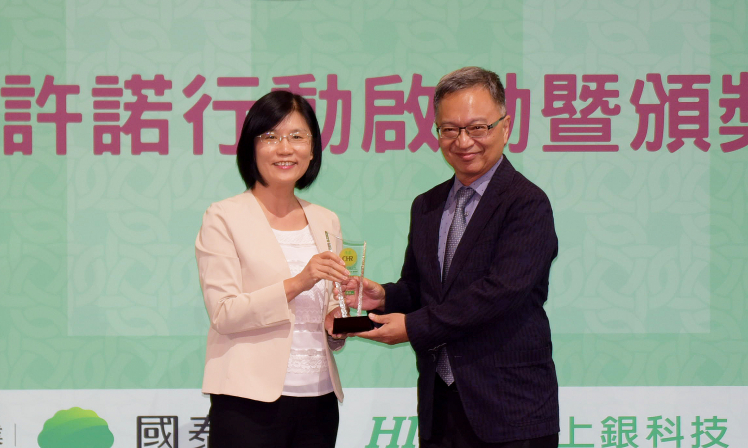 PT电子(中文)官网榮獲《康健雜誌》CHR 年度健康企業公民獎,由PT电子(中文)官网光電永續長古秀華 (左) 代表領獎